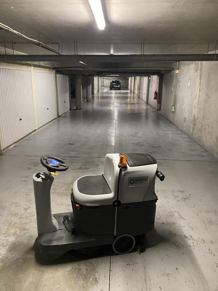 Nous nous sommes rendu sur place avec notre auto- laveuse auto-portée et quelques heures plus tard le sol est tout propre!